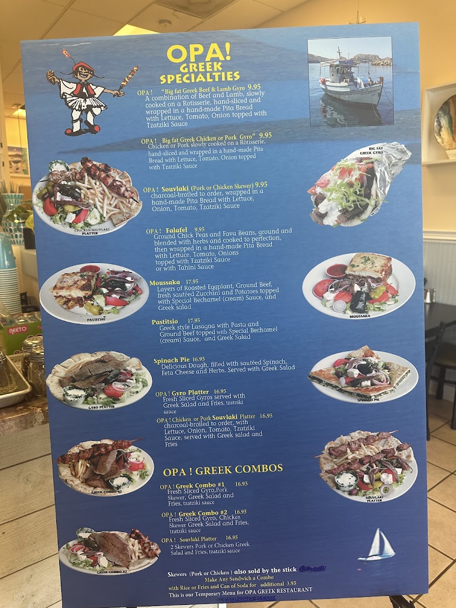 The menu at Opa Greek Restaurant & Pizza offers a warm blend of traditional Greek and Mediterranean dishes alongside familiar favorites like pizza and fresh salads. It has the relaxed feel of a family-friendly restaurant where casual bites meet comforting flavors, making it a great choice for lunch, dinner, or a leisurely meal with friends and family.